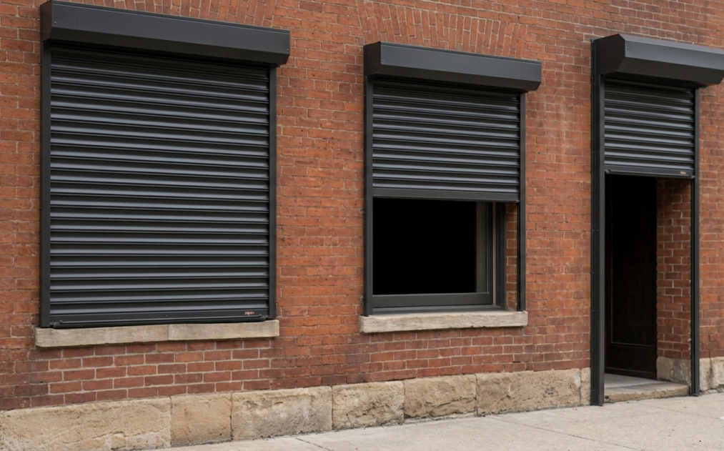 Roll-down security shutters are commonly installed on commercial properties that want to deter break-ins and protect storefront glass